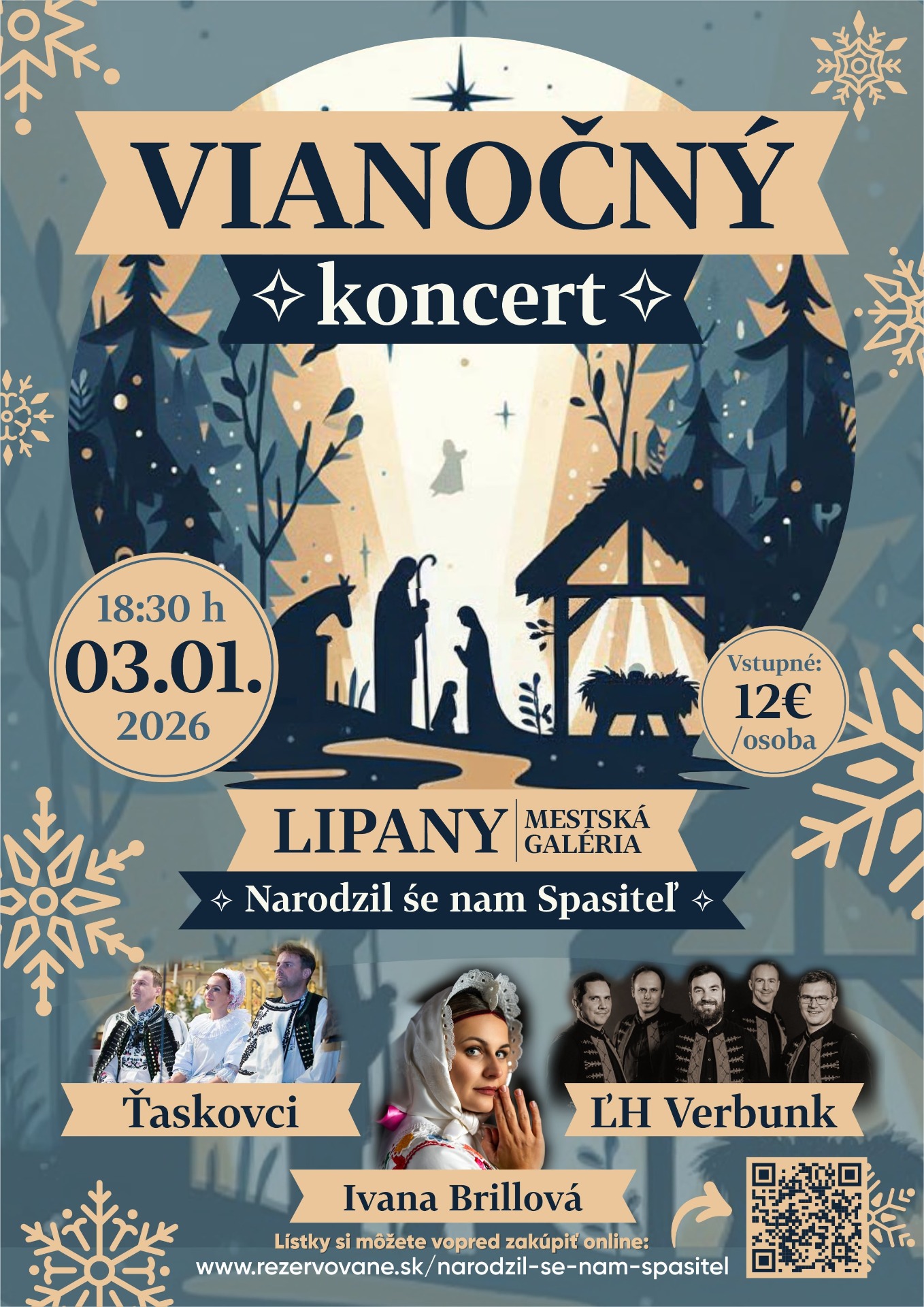 Pozývame Vás aj na naše Vianočné koncerty spolu s Ťaskovcami. Jeden z nich bude 3.1.2026 v Lipanoch, kde budeme mať aj špeciálneho hosťa a to Ivanu Brillovú. Čoskoro zverejníme aj termíny ostatných koncertov Tešíme sa Vás!